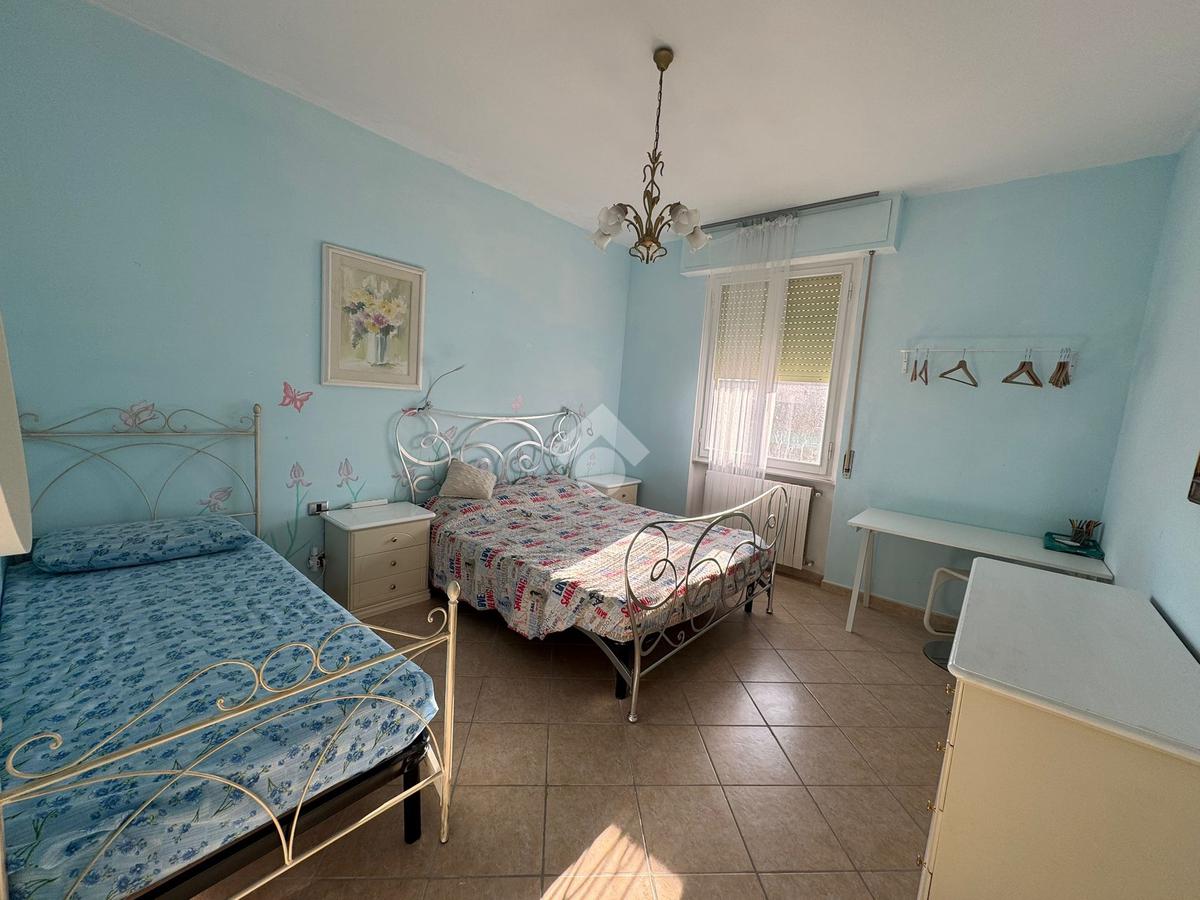 La zona notte è composta da una camera matrimoniale ampia e luminosa, capace di ospitare comodamente un letto matrimoniale, armadio e comò, mantenendo un’ottima vivibilità interna.
