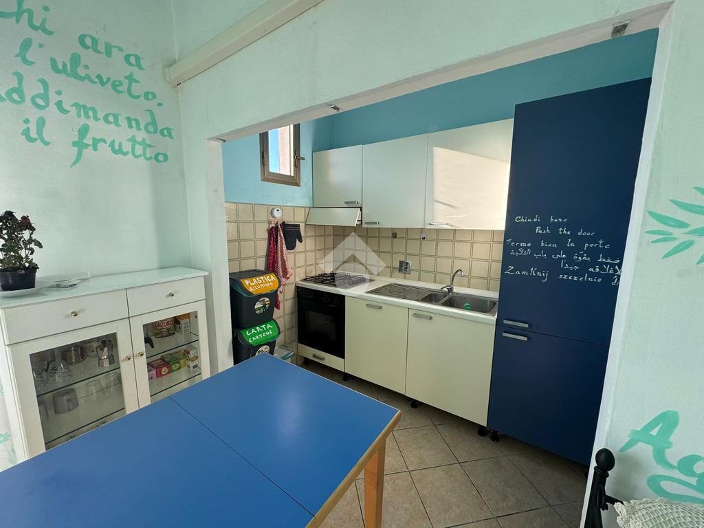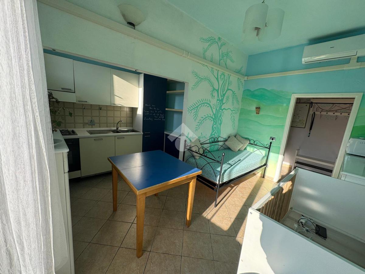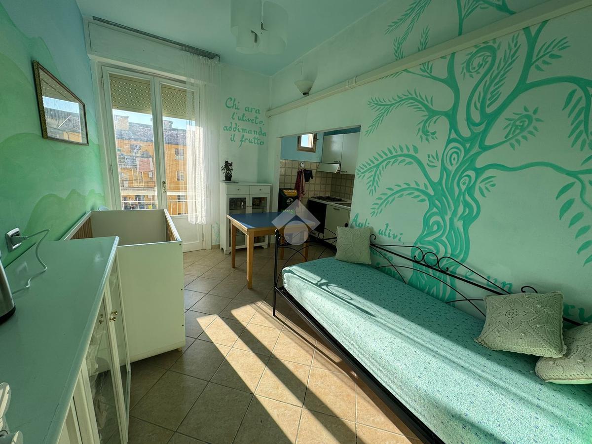 L’ingresso si apre su un luminoso soggiorno con angolo cottura, un ambiente unico e funzionale che accoglie la zona giorno e la cucina in un unico spazio armonioso. Le ampie finestre donano una splendida luce naturale durante tutto l’arco della giornata, mentre la portafinestra conduce al balcone, perfetto per momenti di relax o per stendere. L’atmosfera è resa accogliente dai toni chiari e dal taglio moderno degli ambienti, che rendono la stanza facilmente arredabile e ideale per la vita quotidiana.