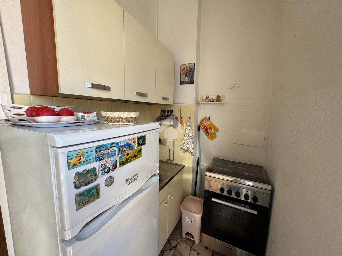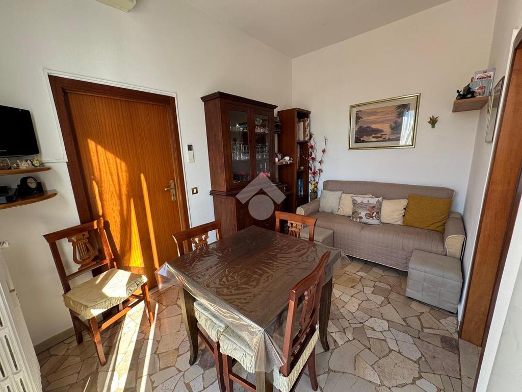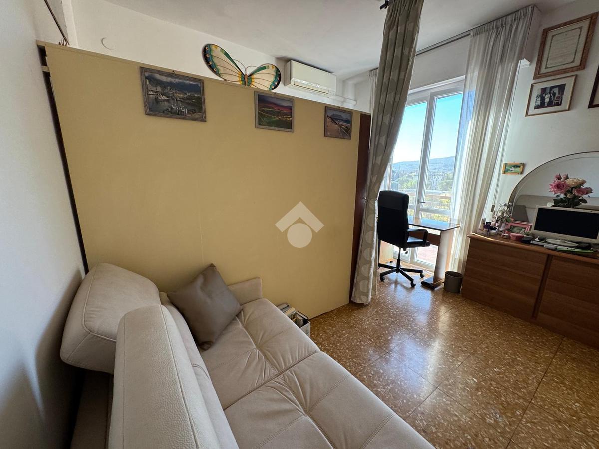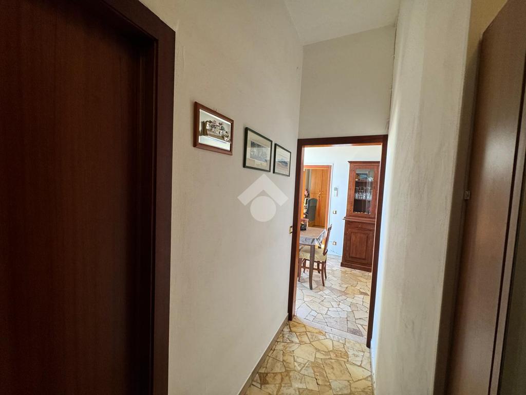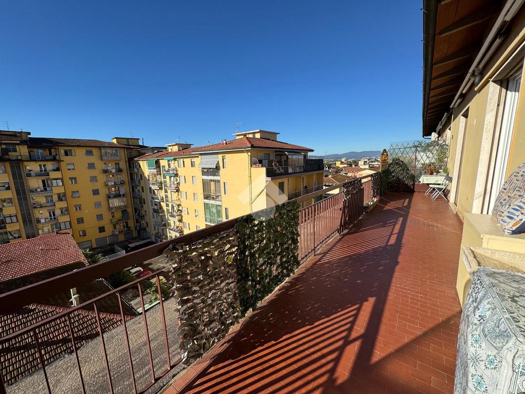 L’ingresso si apre su un disimpegno lungo e funzionale che conduce ai vari ambienti della casa. Il bagno, finestrato e dotato di box doccia, è pratico e ben rifinito. La zona giorno, composta da cucina e soggiorno, risulta ariosa e luminosa grazie alle ampie porte finestre che permettono l’accesso diretto alla splendida terrazza abitabile — il vero punto di forza dell’immobile. Questo spazio esterno, ampio e soleggiato, regala una vista aperta sul verde e sui tetti circostanti, offrendo la possibilità di godere momenti di relax, pranzi e cene all’aperto o semplicemente di respirare un’atmosfera tranquilla e luminosa.