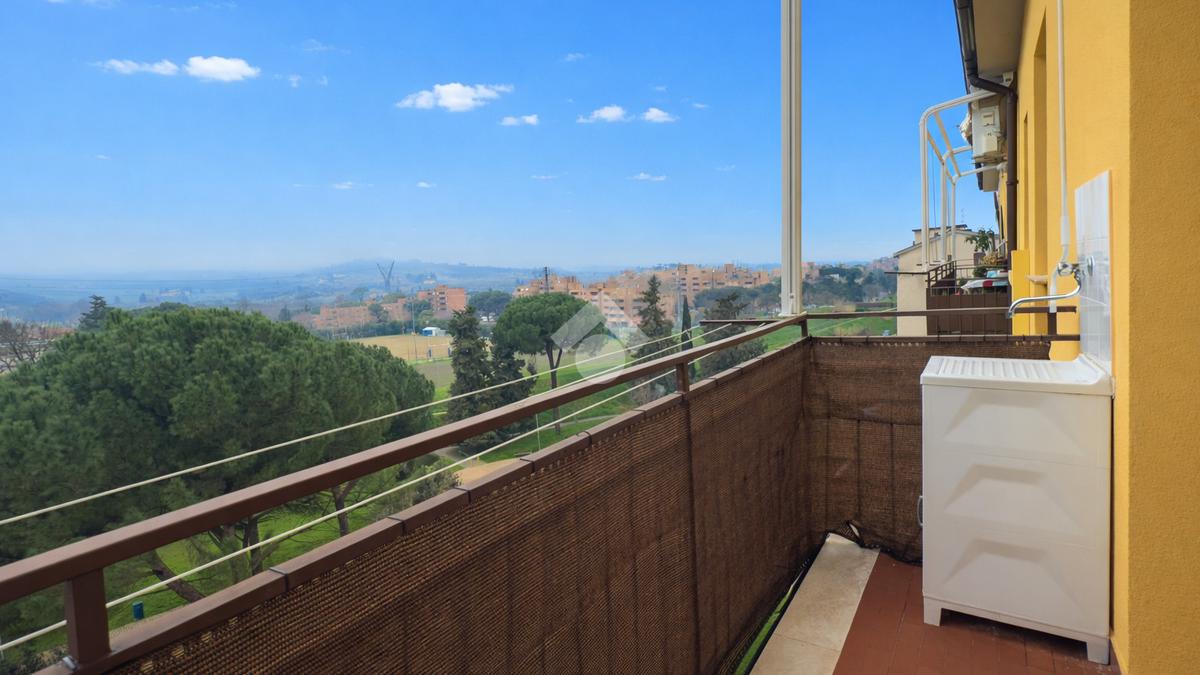 L’ingresso si apre su un ampio soggiorno, un ambiente caldo e confortevole, perfetto per la vita quotidiana e per accogliere gli ospiti. La grande portafinestra conduce a un balcone con affaccio panoramico, che regala una piacevole vista aperta e consente di godere di momenti di relax all’aria aperta.