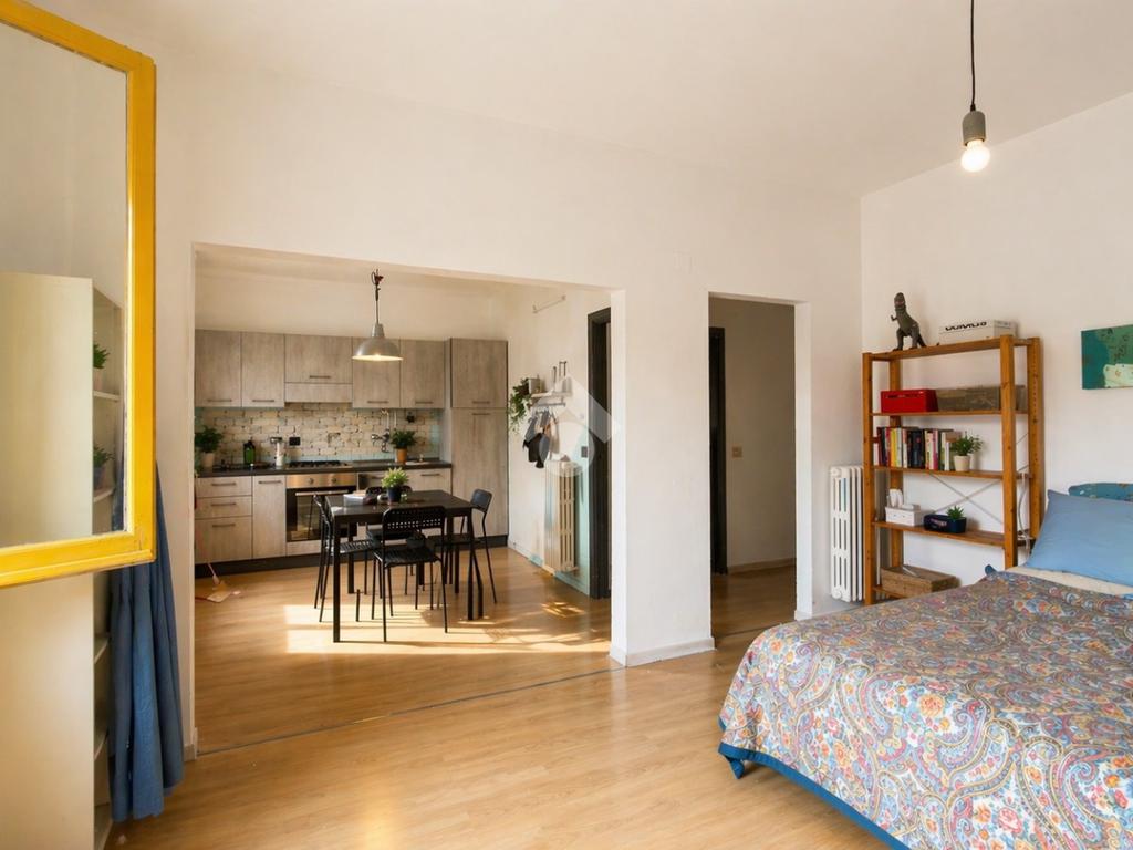 L’ingresso si apre su una luminosa zona giorno in open space, dove cucina abitabile e soggiorno convivono in un unico ambiente arioso e funzionale. La cucina, ben organizzata, consente l’inserimento di un tavolo da pranzo e si presta a diventare il cuore della casa, perfetta per la vita quotidiana e per momenti conviviali. Il soggiorno, ampio e particolarmente luminoso grazie all’accesso diretto al balcone, offre uno spazio accogliente da dedicare al relax, con possibilità di realizzare una comoda zona divani e area TV. Il balcone rappresenta uno sfogo esterno importante, ideale per godere di luce naturale e aria aperta durante la giornata.